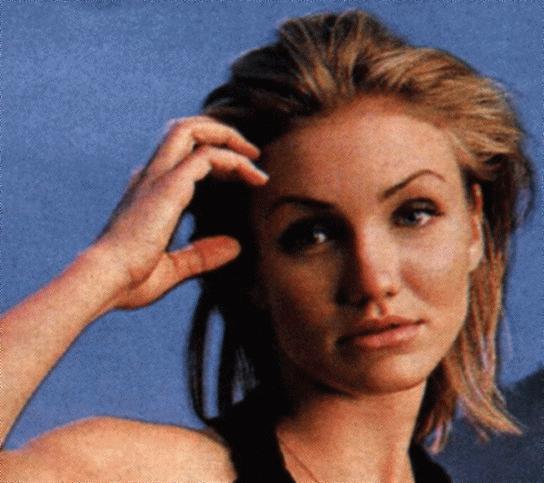 The most popular photograph of Cameron Diaz. She's leaning towards the camera in a red dress. Download.